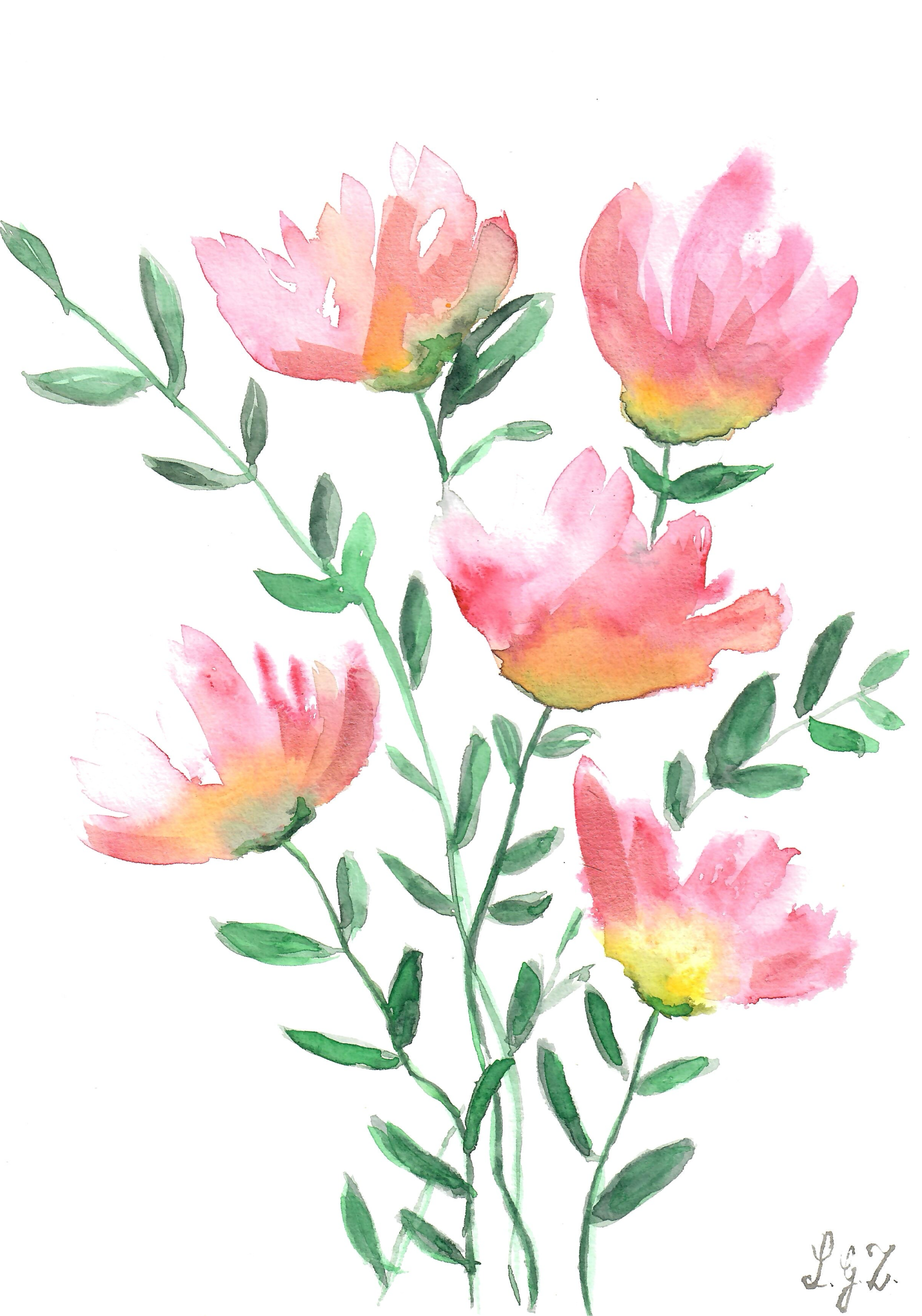 Une aquarelle douce et légère, capturant la beauté éphémère des fleurs dans des teintes rosées et dorées. Réalisée sur papier en cellulose 300 g/m² au format A4, cette peinture unique est prête à être encadrée.