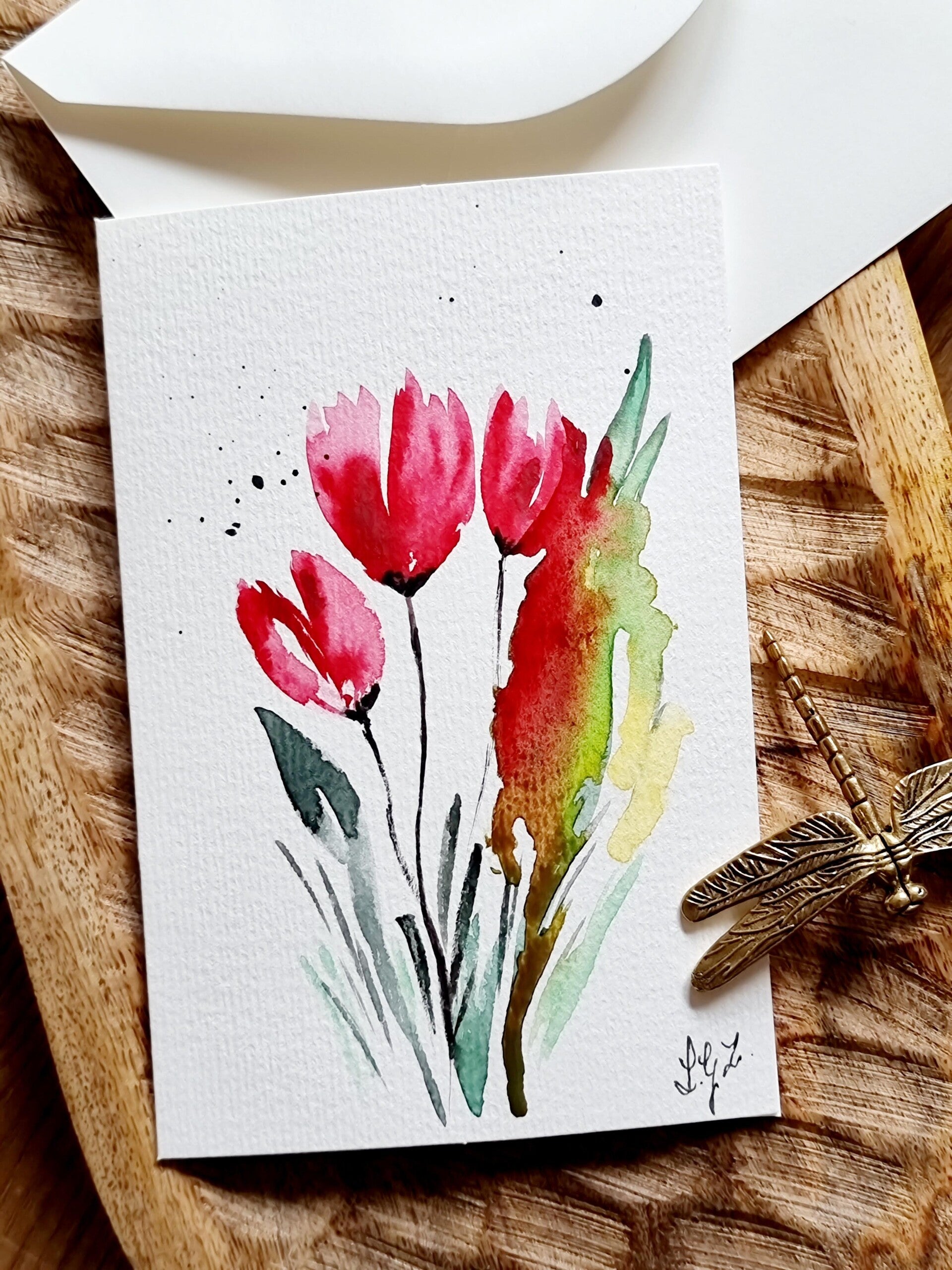 Aquarelle sur papier 100 % coton - Dimensions 10X15 - 15 gr. Les cartes peuvent aussi être encadrées et devenir de jolis petits tableaux.