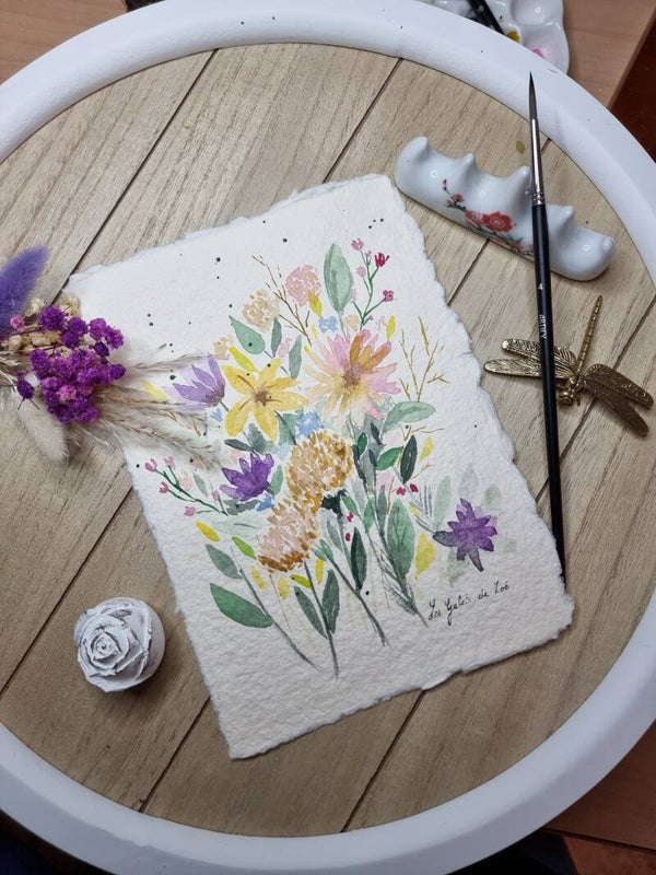 Des fleurs délicatement peintes à l'aquarelle sur un papier épais de qualité supérieure ivoire 100% coton