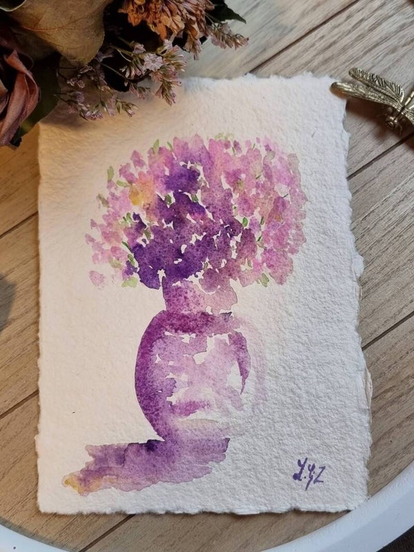 Des fleurs délicatement peintes à l'aquarelle sur un papier épais de qualité supérieure ivoire 100% coton