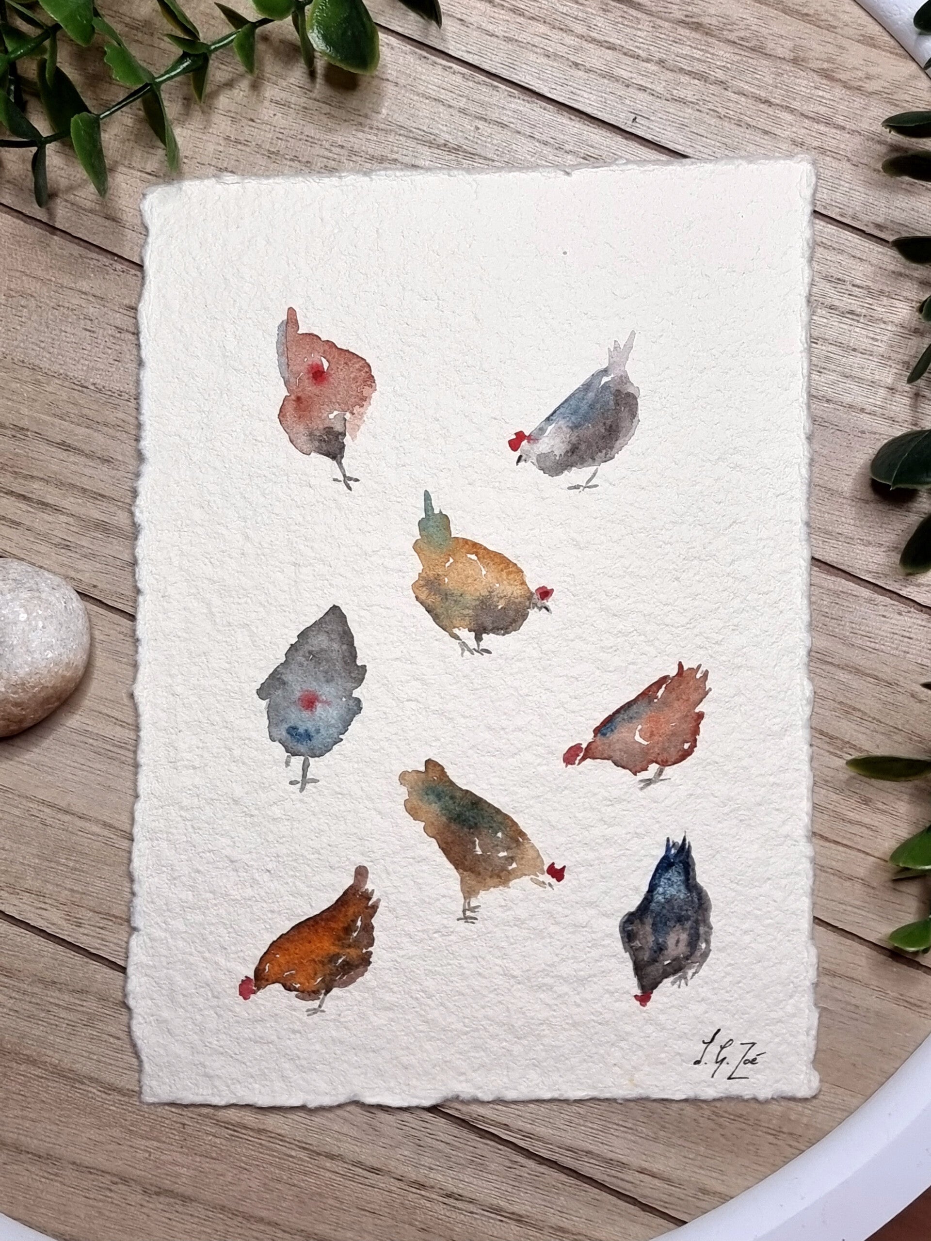 Aquarelle sur papier épais de qualité supérieure ivoire 100% coton - à encadrer (Vendue sans cadre)