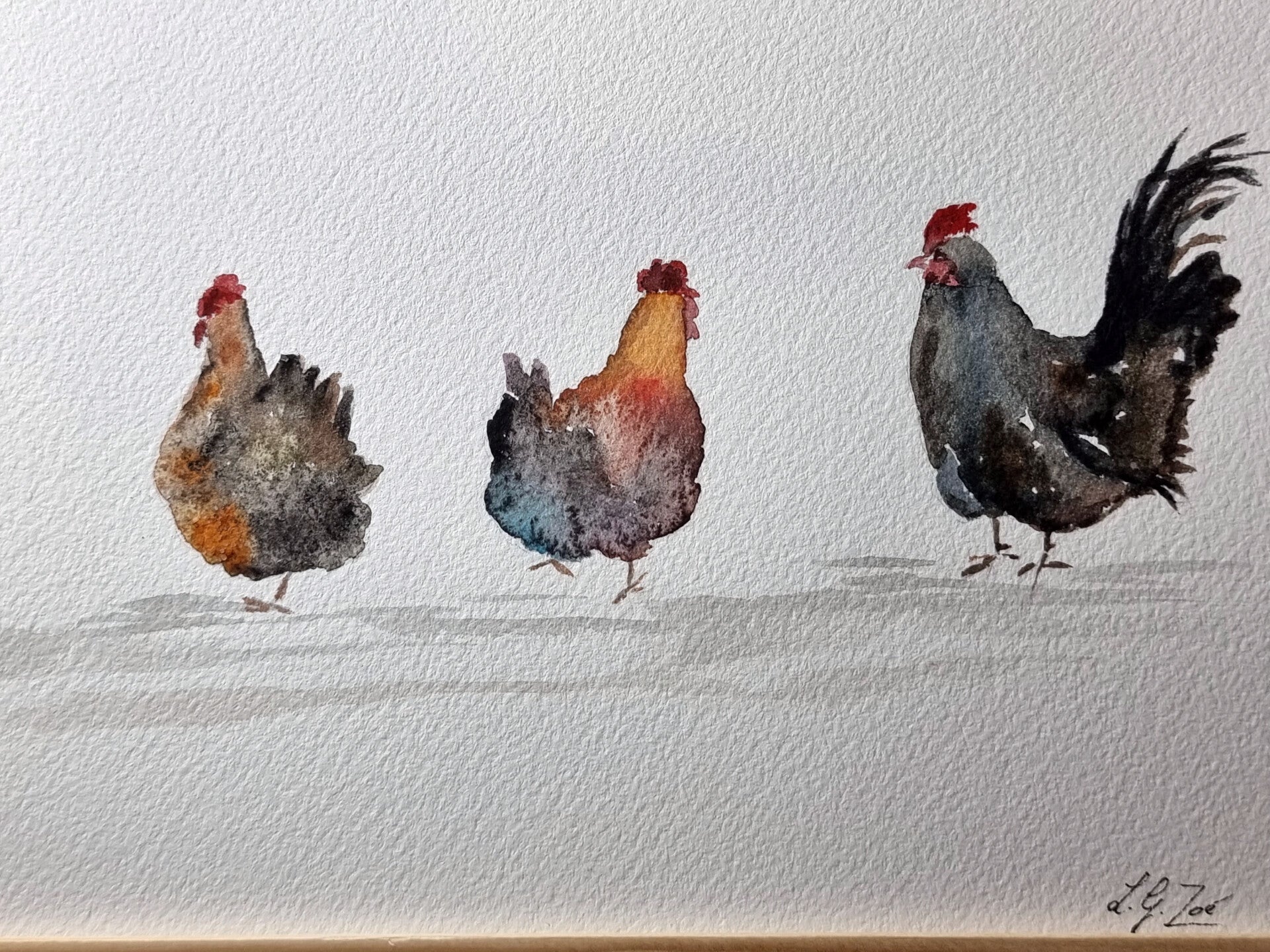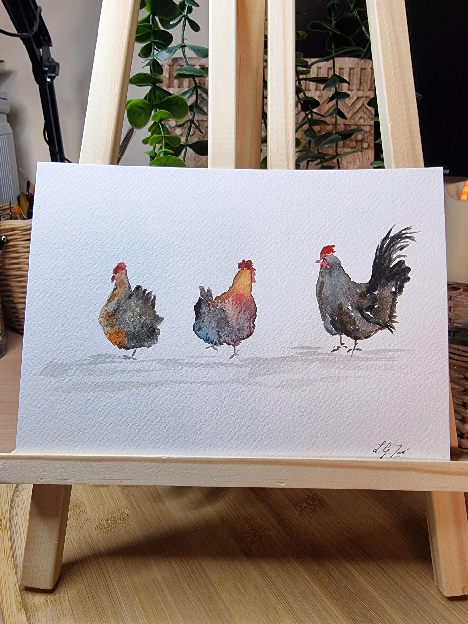 Sublimez votre intérieur avec cette aquarelle originale unique, peinte à la main. Ce trio de poules apportera une touche de poésie et d'authenticité à votre décoration, que ce soit dans une cuisine, une entrée ou un salon au style "campagne chic".
