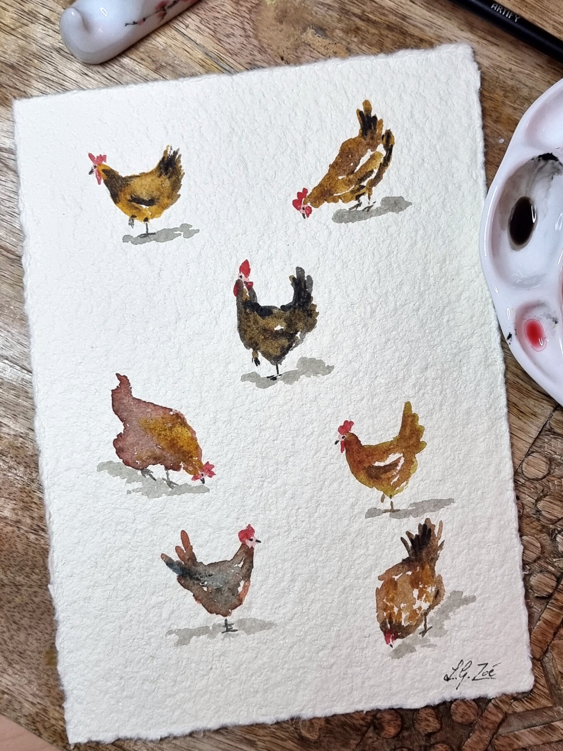 Aquarelle sur papier épais de qualité supérieure ivoire 100% coton - à encadrer (Vendue sans cadre)
