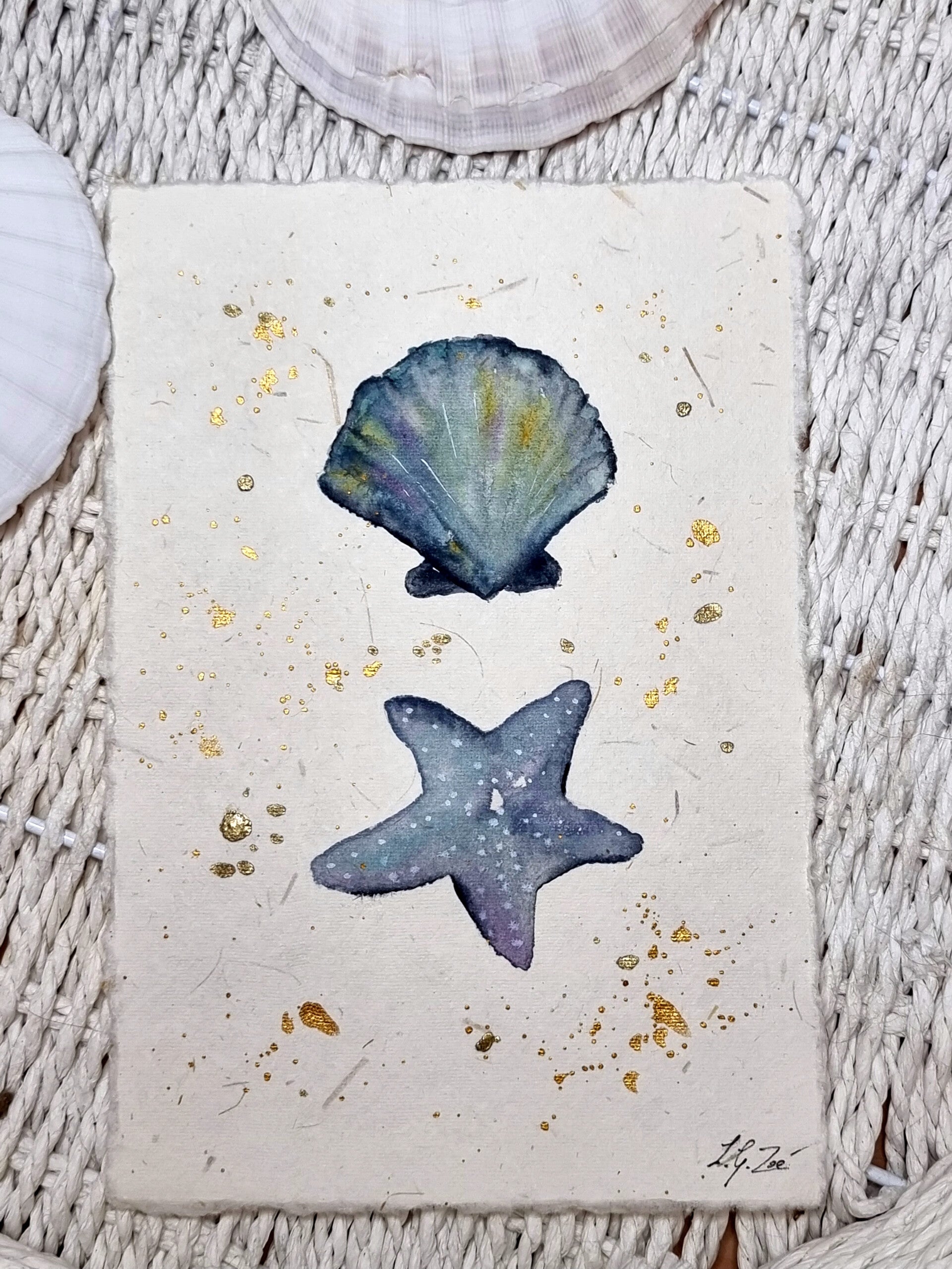 Aquarelle sur papier fait main 150 g/m² – texture naturelle – bords frangés – rendu doux et authentique - Format A5 - sans cadre